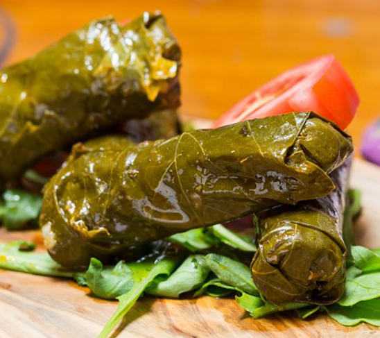 Gefüllt mit Reis, Zwiebeln und Gewürzen dazu Salat und Tzatziki "5 Stk."